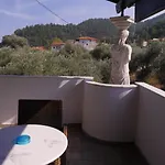Lägenheten med kassaskåp, te/kaffebryggare och plattskärms-TV med satellitkanaler garanterar en trevlig vistelse i Skala Potamia. Varje badrum är utrustat med duschkabin och separat toalett.
